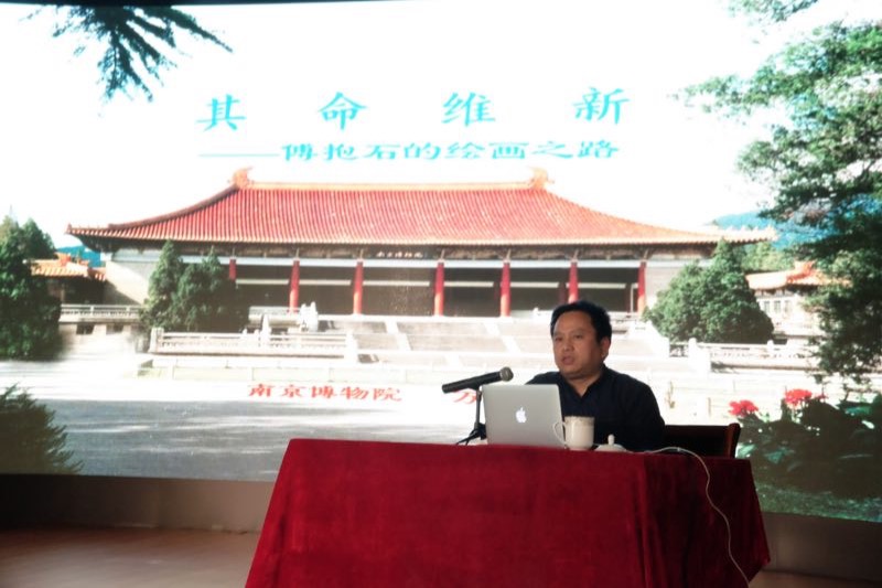 万新华先生结合南京博物院馆藏的三百多幅傅抱石绘画作品的图像资料,论述了傅抱石一生绘画风格的演变。通过对大量相似题材绘画作品的比对分析,揭示傅抱石山水、人物画风格形成的脉络,以及在不同历史时期画风的变迁。万先生还从纸笔材料、用笔技巧两个方面,剖析了傅抱石绘画的典型技法“抱石皴”(中国绘画史上唯一以画家名字命名的皴法)的形成,并指出傅抱石的绘画技法,在画史上是从传统的“线”的表现转至“面”的表现的突破。